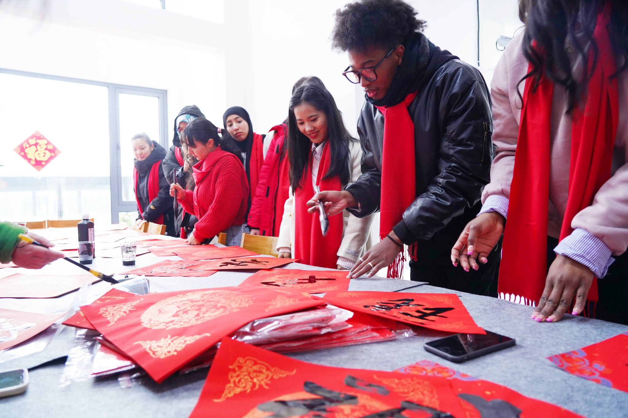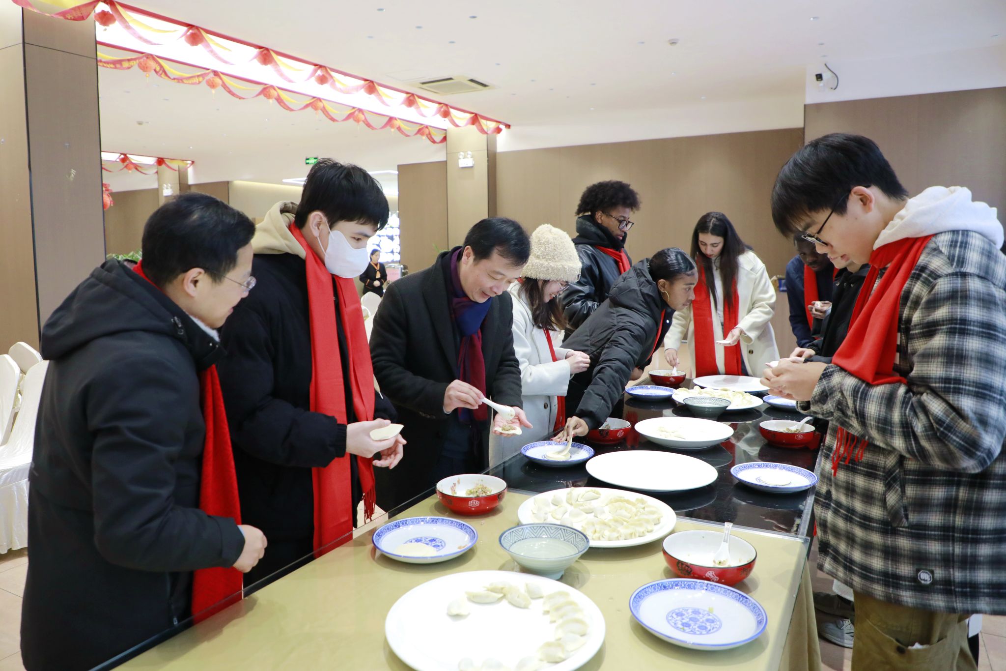 1月26日,農(nóng)歷臘月廿七。校黨委副書記倪建均在相關(guān)部門負(fù)責(zé)人的陪同下,看望慰問寒假留校學(xué)生,與留校師生歡聚一堂,一起包餃子、寫福字、吃年飯,喜迎新春佳節(jié)。