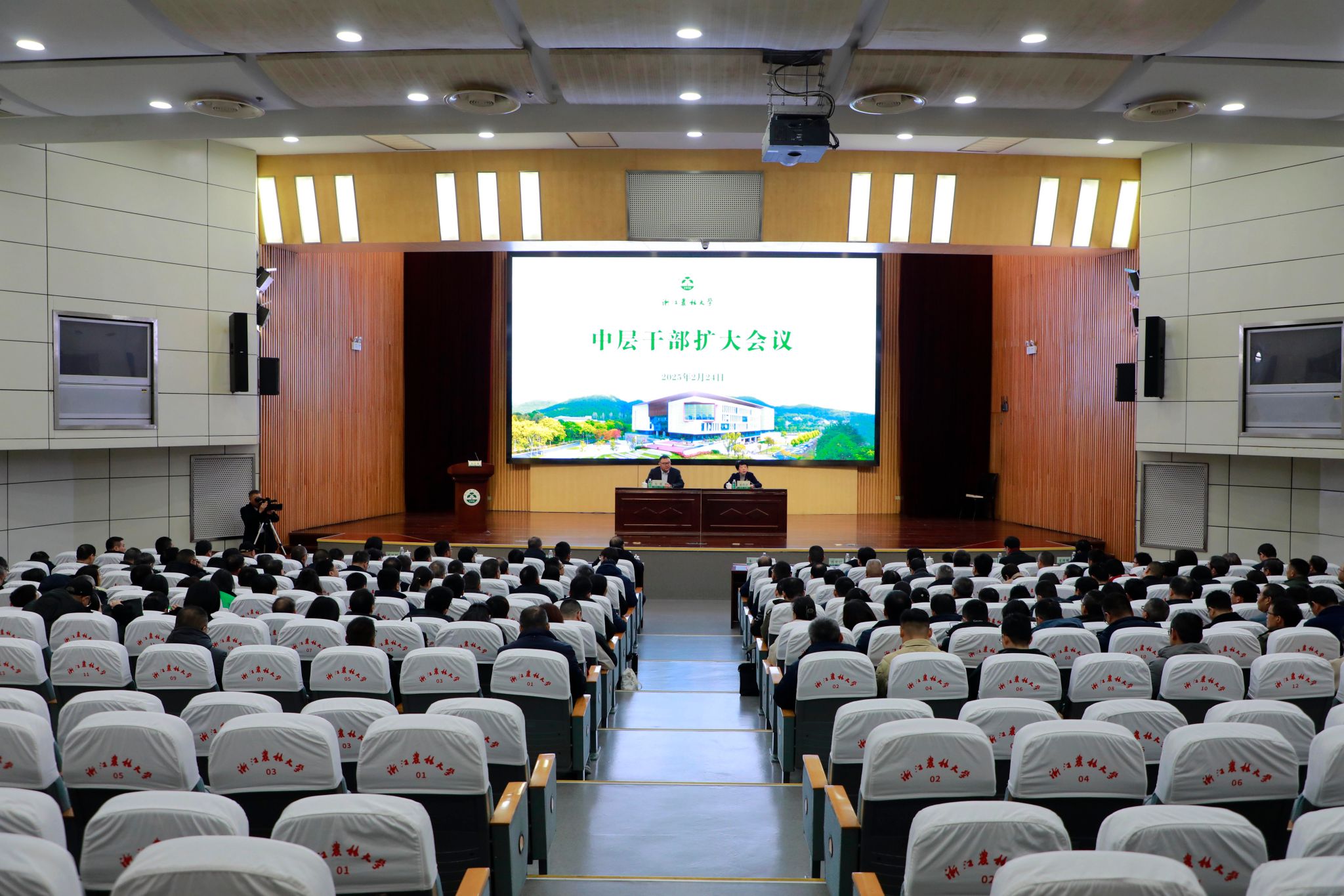 2月24日下午,浙江農(nóng)林大學2025年新春第一會——中層干部擴大會議在東湖校區(qū)圖書館第一報告廳召開。校黨委書記朱斌發(fā)表講話并部署2025年度學校重點工作。校黨政班子成員出席會議。會議由校黨委副書記施美紅主持。