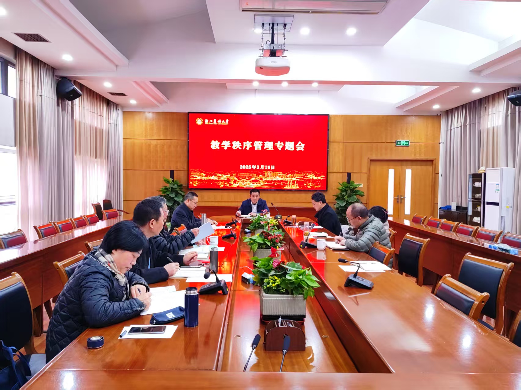 3月16日,學校在行政樓302會議室召開教學秩序管理專題工作會議。會議由副校長徐愛俊主持,教務處、研究生院、質控中心負責人和校督導組組長、副組長參會。