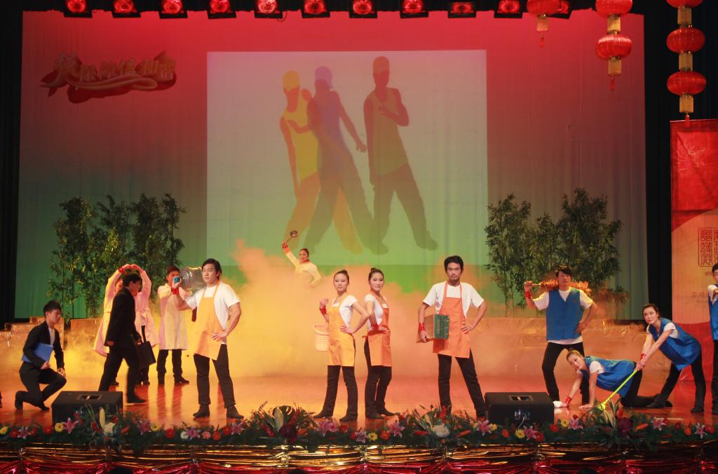 晚會在動感十足的歌舞《魅力后勤》中拉開帷幕。晚會主題突出、氣勢恢宏、形式多樣、結構緊湊、特色鮮明,展示了廣大后勤員工積極向上、奮發進取的精神面貌。現代舞《后勤人》用節奏明快、動感十足的舞蹈展現了后勤員工們用勤勞的雙手,無怨無悔做好學校教研的保障工作,體現了后勤人特別能吃苦、特別能奉獻的精神。小品《我愛我家》用質樸、真實、生動的表演,再現了后勤員工們舍小家、為大家,兢兢業業、任勞任怨、無私奉獻的精神。詩朗誦《基業長青—我們的光榮與夢想》,展示了我校后勤社會化改革十余年來從新生到崛起的巨大變化和近年來后勤集團走上快速發展、壯大之路,表達了全體后勤人奮發進取、努力拼搏,為創造后勤集團更輝煌的明天而奮斗的心聲。情景劇《早會》,展示了后勤員工飽滿的團隊勢氣和積極向上的精神風貌,集團文化展現得淋漓盡致。舞臺歌伴舞《相親相愛》,激情而高亢的旋律、動感明快的舞步表達了后勤員工對學校、集團發展的美好憧憬,將晚會推向了高潮。