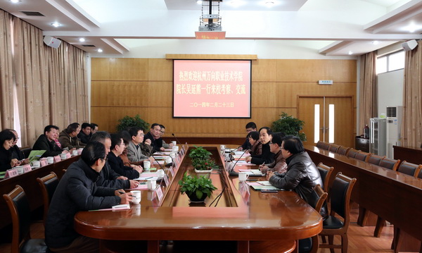 2月23日下午,杭州萬向職業技術學院院長吳延熊一行20余人來校考察交流。