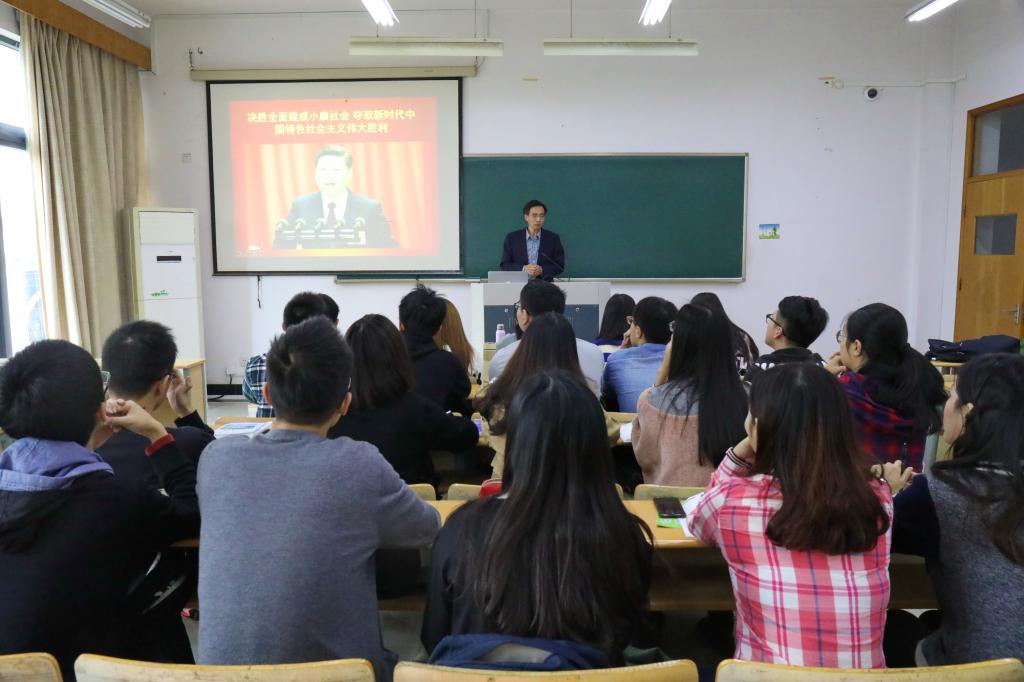 馬克思學院第一時間將十九大精神作為思政課的重要內容,思想老師陸續開始為同學講授十九大報告的有關內容,引導學生自覺學習領會十九大精神。