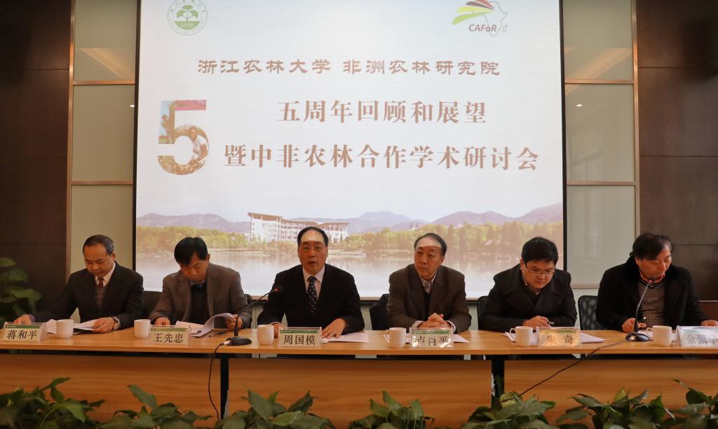 1月14日,非洲農林研究院五周年回顧活動暨中非農林合作學術研討會在衣錦校區學術交流中心舉行。校黨委書記周國模、副校長金佩華、農業部外經中心非洲處處長王先忠、商務部西亞非洲司一處處長朱奇等出席。