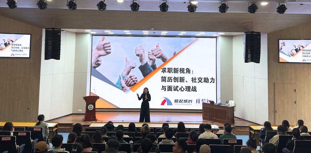 本次活動邀請了人力資源心理學(xué)專家、企業(yè)管理教練、青年人才教練莊黎作題為《求職新視角:簡歷創(chuàng)新、社交助力與面試心理戰(zhàn)》的主題報告,莊老師站在HR招聘的角度,從AI時代的組織招聘變化,空缺崗位的產(chǎn)生以及求職技巧等三個方面分享了求職策略,幫助同學(xué)們提高求職能力,構(gòu)建個人優(yōu)勢競爭力。