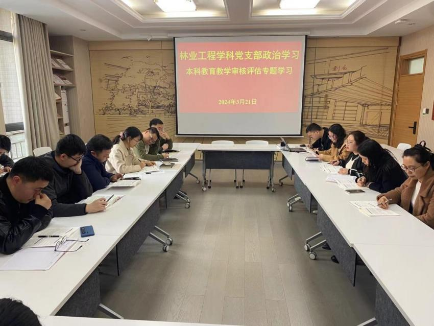3月21日下午,林業工程學科黨支部于在國家木質工程中心206黨員之家召開了《本科教育教學審核評估學習手冊》專題學習會,林業工程學科全體教師參加,會議由林業工程學科黨支部副書記侯俊峰主持。
