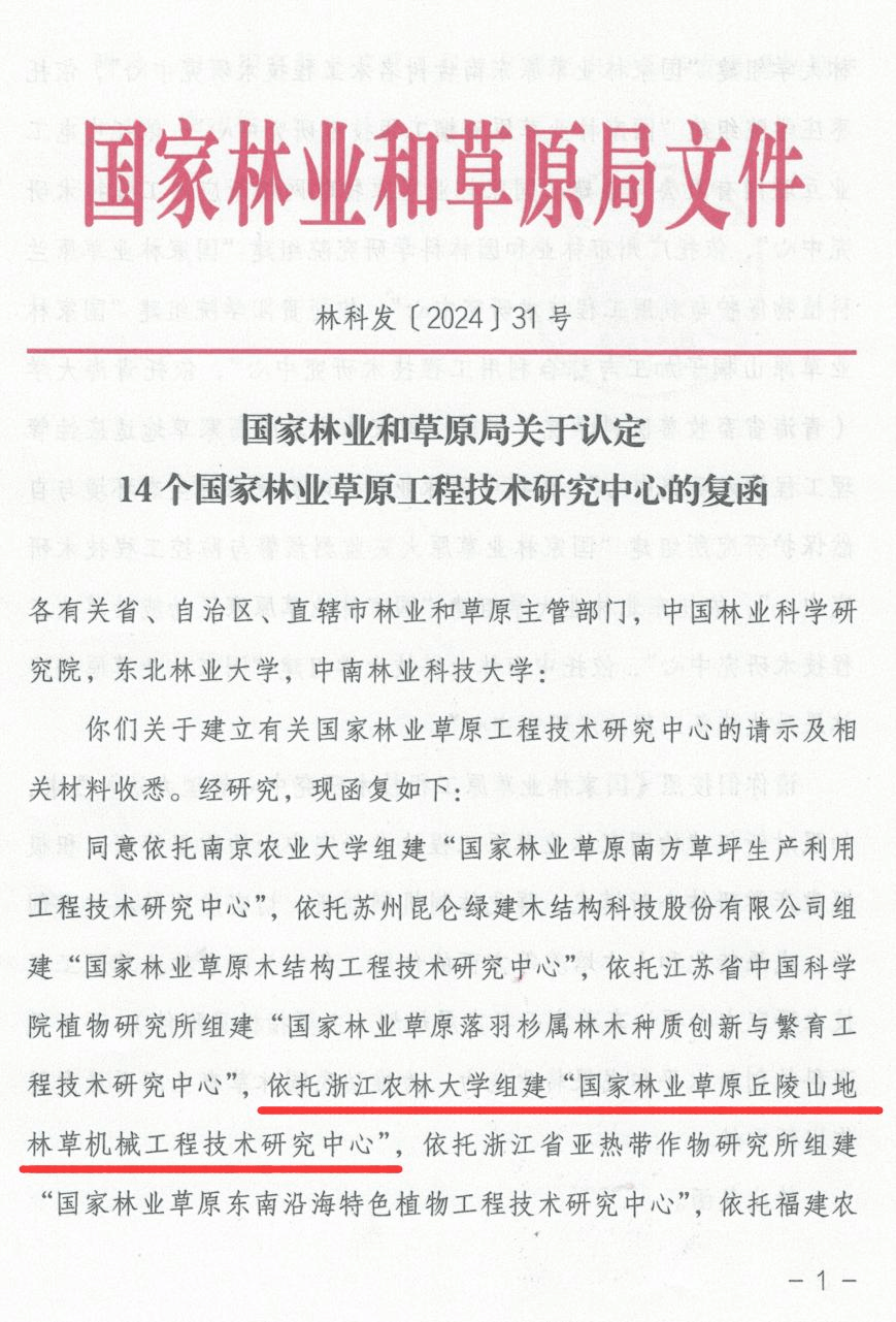 近日,從國家林業和草原局獲悉,我校光機電工程學院牽頭申報的“國家林業草原丘陵山地林草機械工程技術研究中心”正式獲批。