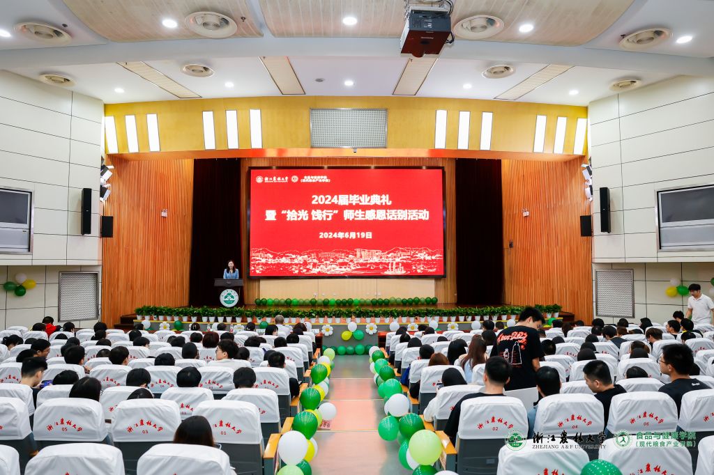 6月19日下午,食健學院2024屆畢業典禮暨“拾光·餞行”感恩話別活動在東湖校區圖書館第一報告廳舉行。食健學院黨政班子成員、學科專業負責人、研究生教育負責人、畢業生導師、班主任、輔導員等300余人,共同歡送2024屆畢業生。