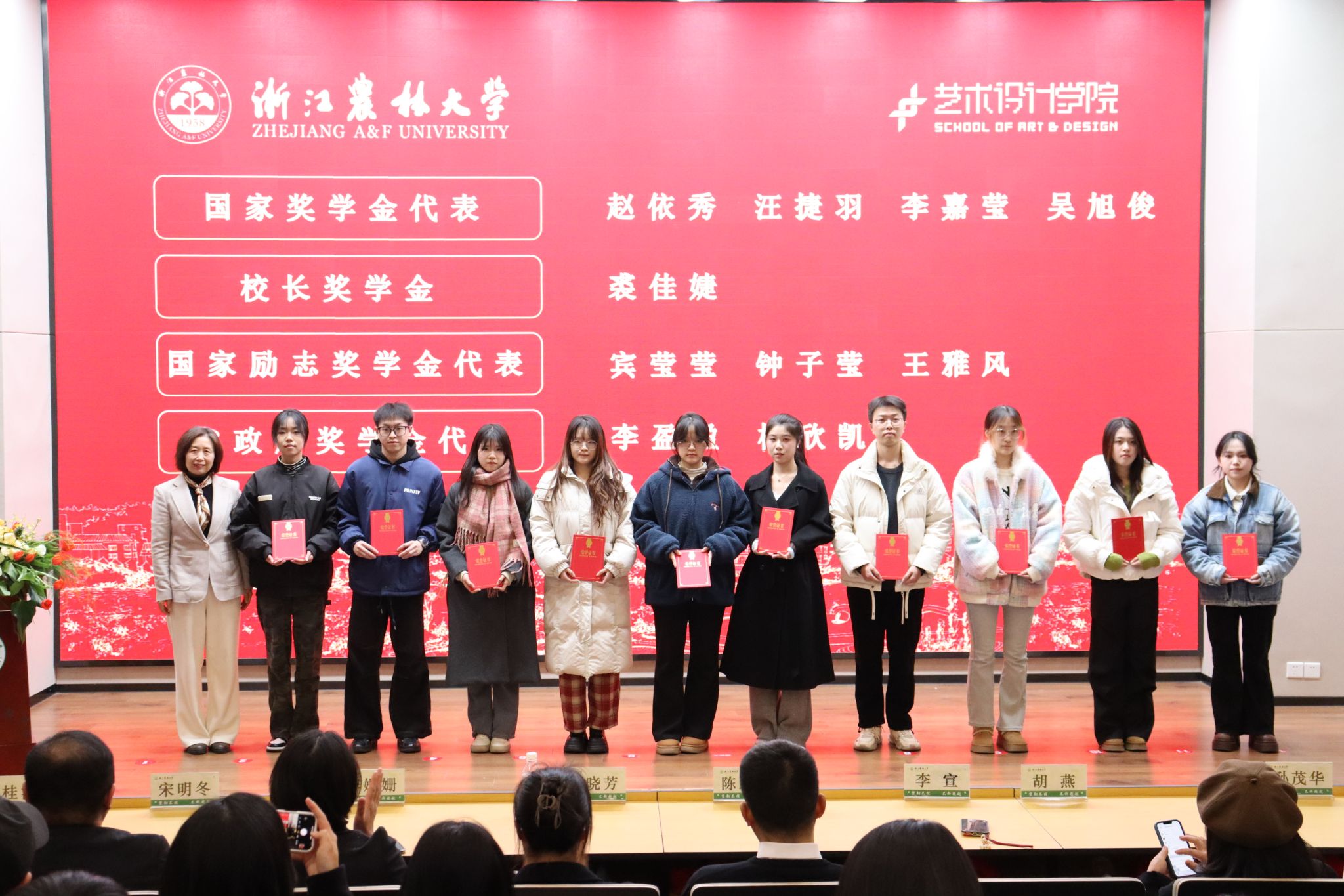 12月12日晚,藝術設計學院2024年師生表彰大會在學三國際學術報告廳舉行。藝術學院院長陳思宇,黨委書記黃曉芳及其他班子成員、專業負責人出席并為獲獎師生頒獎。