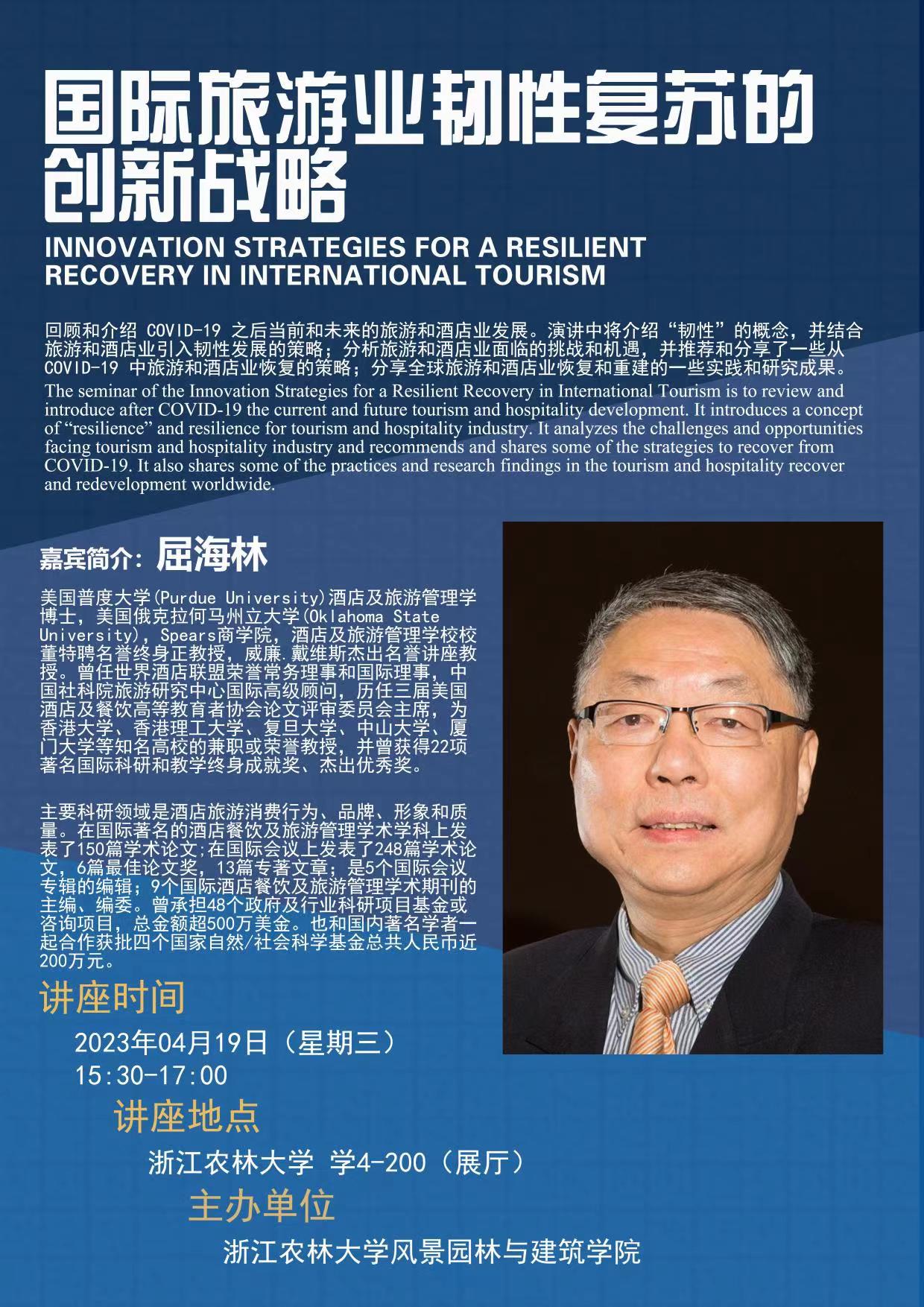 講座主題:國際旅游業韌性復蘇的創新戰略