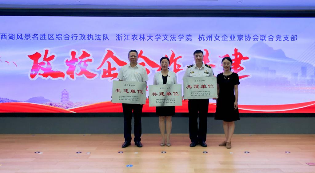 杭州市婦聯黨組成員、副主席陳佳出席此次活動并致辭。她指出,舉行此次活動,是杭州西湖風景名勝區綜合行政執法隊、浙江農林大學文法學院以及杭州市女企業家協會聯合黨支部三方通力合作、共謀發展的有力體現,三方積極推動人才培養,有助于開創政校企合作新局面。